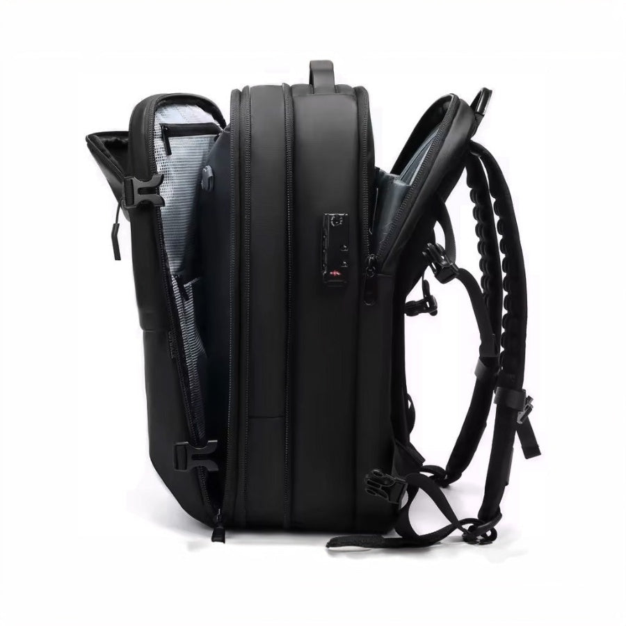 Grâce à son système de compression unique directement intégré, il permet de réduire le volume de vos vêtements jusqu’à 50 %, vous offrant une capacité impressionnante (plus de 25 tenues complètes) tout en respectant les dimensions cabine des compagnies aériennes comme Ryanair ou EasyJet.